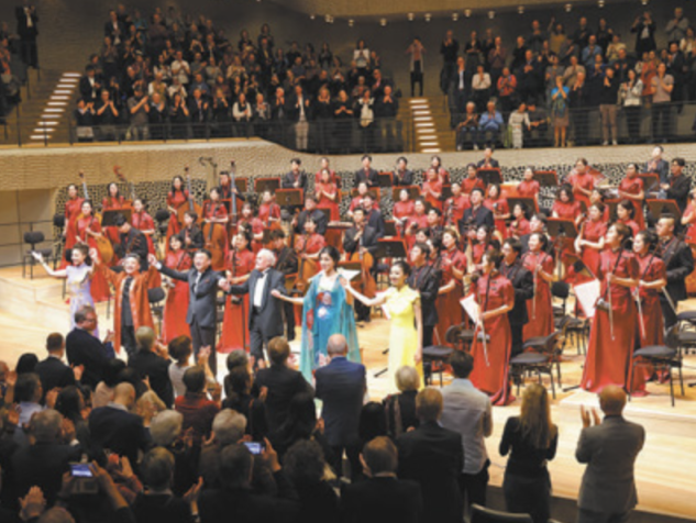 易北爱乐音乐厅是欧洲最负盛名的音乐厅之一,当晚该音乐厅几乎座无虚席。本场音乐会由著名指挥家、中国音乐学院院长李心草指挥。中国艺术家通过古筝、琵琶、唢呐、 二胡等中国民族乐器,协同乐团共同精彩演绎了《追梦京华》《百鸟朝凤》和《满江红》等曲目。现场观众对精彩的演奏报以阵阵掌声。演出最后,主持人迈耶对全场观众大声用中文说了3遍“新年好”,然后请全场观众跟他一起念:“新年好!”拜年声、欢笑声和掌声响彻音乐厅。